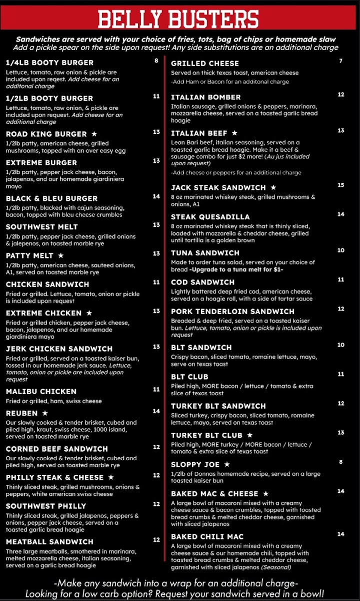 Highlighting its culinary prowess, Bootleggers offers Friday Night Specials that are simply irresistible. How does a juicy 8 Oz Filet Mignon or a succulent 24 Oz Porterhouse sound? Each steak is expertly prepared to deliver richness and depth of flavor, making it a must-try for meat lovers. The star of the show is undoubtedly the Broasted Pork Chops, which have been praised as the “tastiest you'll ever eat” and come served with your choice of sides.